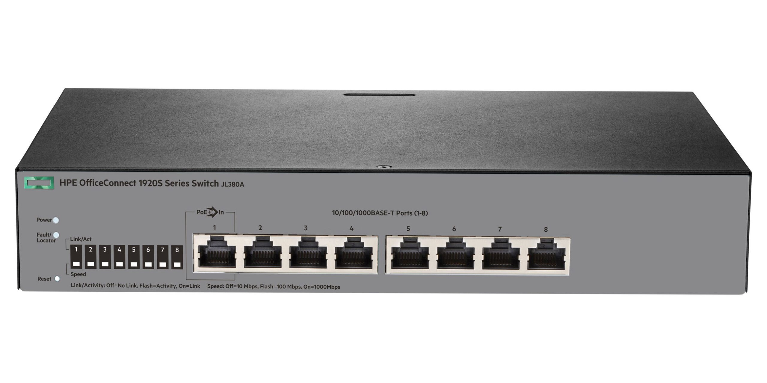 HPE 1920S 8G PPoE+ 65W Switch (4×10/100/1000 RJ-45 PoE+ + 4×10/100/1000 RJ-45, Web-managed, static routing, 19′) (repl. for JG921A)