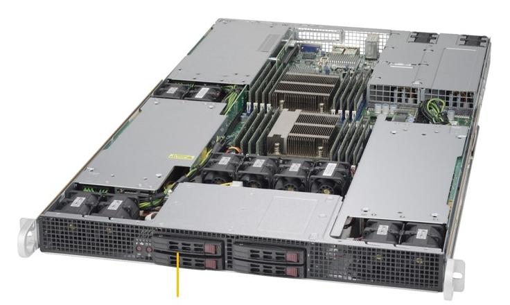 | Жесткие диски | До 4 накопителей SAS/SATA 2,5″ с горячей заменой |
